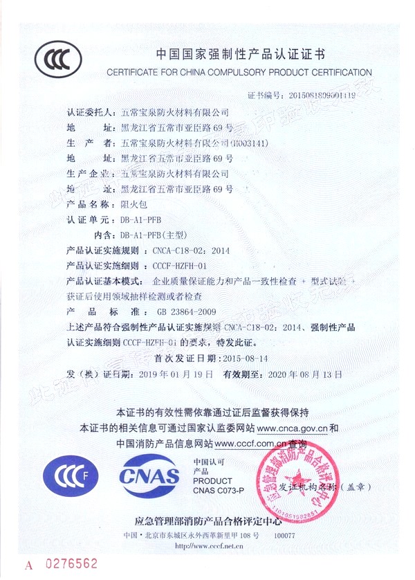企業(yè)簡介 五常寶泉防火材料有限公司(黑龍江省寶泉消防設(shè)備有限公司)是主要制造、經(jīng)營、銷售防火阻燃材料系列產(chǎn)品。其中以自粘性阻燃包帶(ZFBD)、阻火包(PFB)、有機防火堵料(SFD)、室內(nèi)超薄型鋼結(jié)構(gòu)防火涂料(NCB(BCF)-1)為主要產(chǎn)品。寶泉牌防火材料系列產(chǎn)品是普通防火材料的更新?lián)Q代產(chǎn)品,防火性能優(yōu)異,具有普通防火材料沒有的諸多優(yōu)點:施工方便、經(jīng)久耐用、耐火極限高、熱傳導(dǎo)率低、耐腐蝕、抗老化、無毒無害、環(huán)保、可以連續(xù)施工等特點。產(chǎn)品廣泛應(yīng)用于電力企業(yè)(各型電廠、輸變電公司、電建公司、電力公司)、石油化工企業(yè)、冶金業(yè)、通訊業(yè)、地鐵、隧道、...